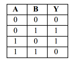 X-OR merupakan gerbang OR yang bersifat exlusif, di mana keluarannya akan nol jika masukannya bernilai sama, dan jika salah satu masukannya berbeda maka keluarannya akan bernilai 1.