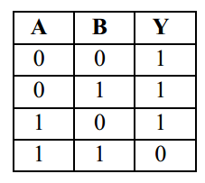 Gerbang NAND adalah gerbang AND yang keluarannya disambungkan ke inverter. Dan nilai dari tabel kebenarannya merupakan kebalikan dari tabel kebenaran dari gerbang AND.